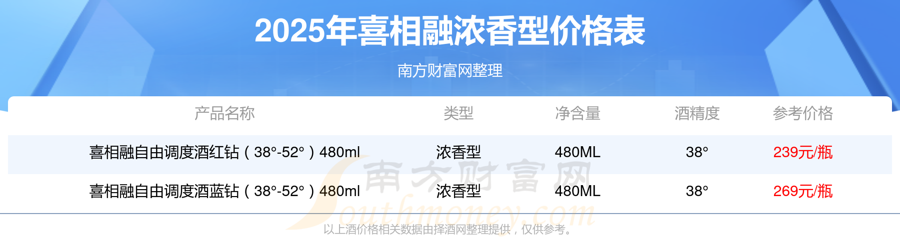 喜相融自由調(diào)度酒藍(lán)鉆(38°-52°)480ml參考價(jià)269元/瓶、喜相融自由調(diào)度酒紅鉆(38°-52°)480ml參考價(jià)239元/瓶。