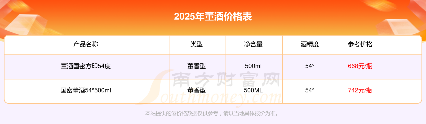 董酒最新價(jià)格2025:國(guó)密董酒54°500ml參考價(jià)742元/瓶、董酒國(guó)密方印54度參考價(jià)668元/瓶。