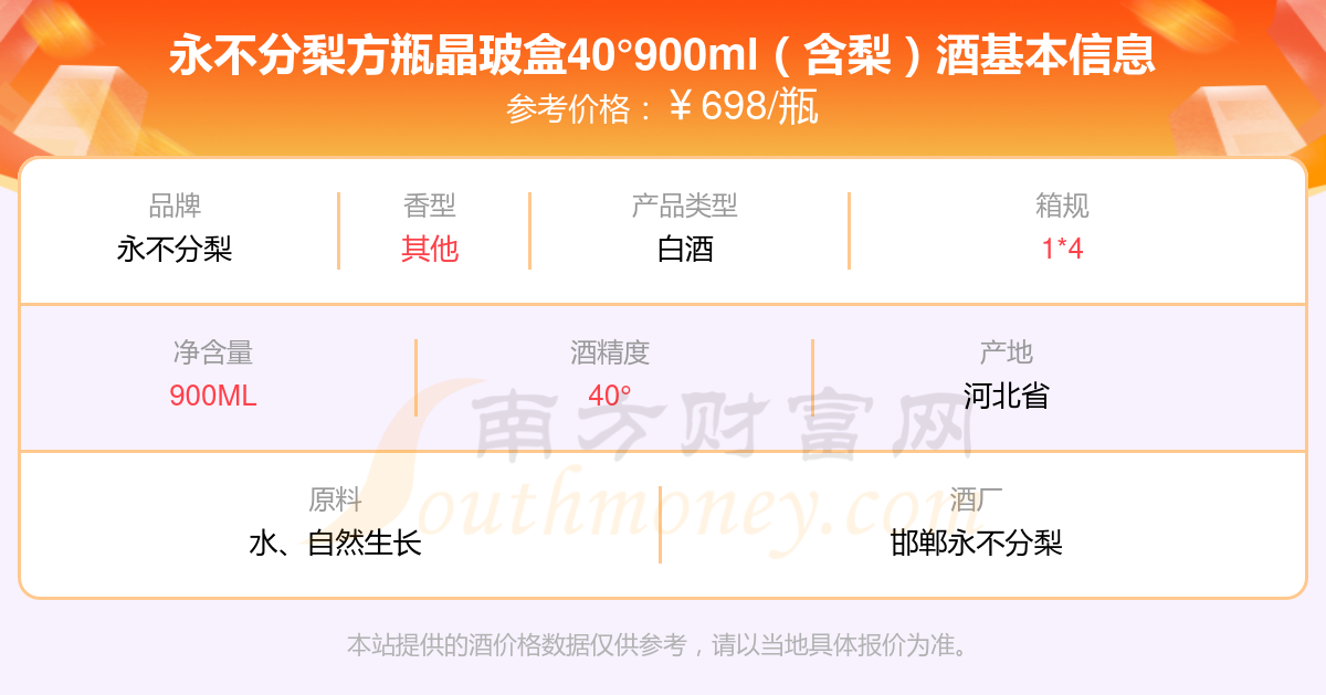 永不分梨方瓶晶玻盒40°900ml(含梨)基本信息