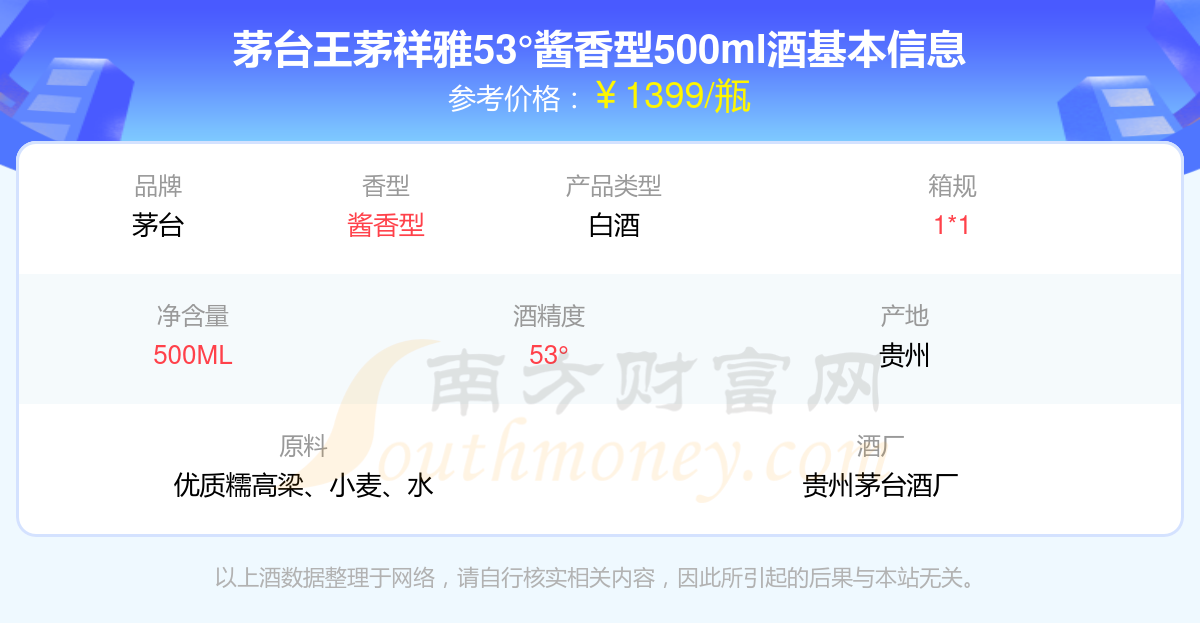 茅臺(tái)王茅祥雅53°醬香型500ml基本信息