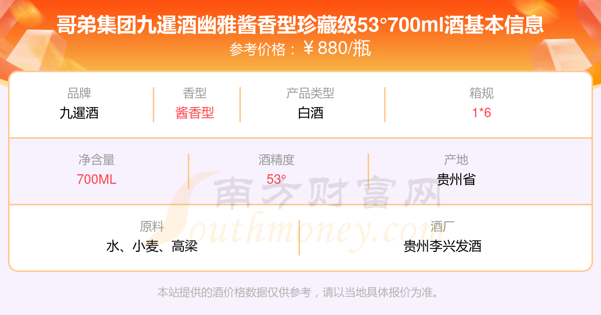 哥弟集團(tuán)九暹酒幽雅醬香型珍藏級(jí)53°700ml基本信息