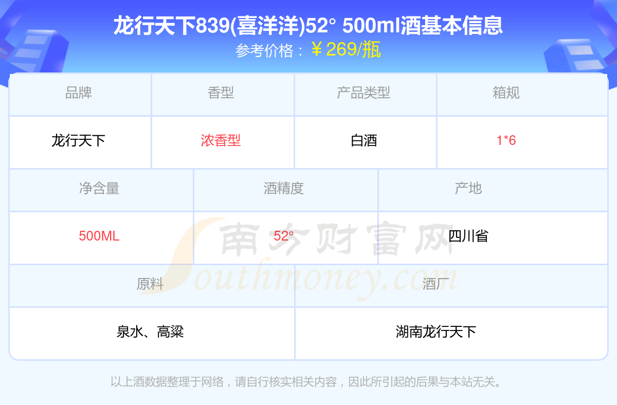 龍行天下839(喜洋洋)52° 500ml基本信息