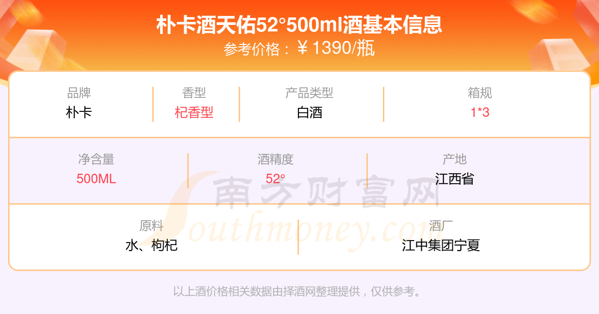 樸卡酒天佑52°500ml基本信息