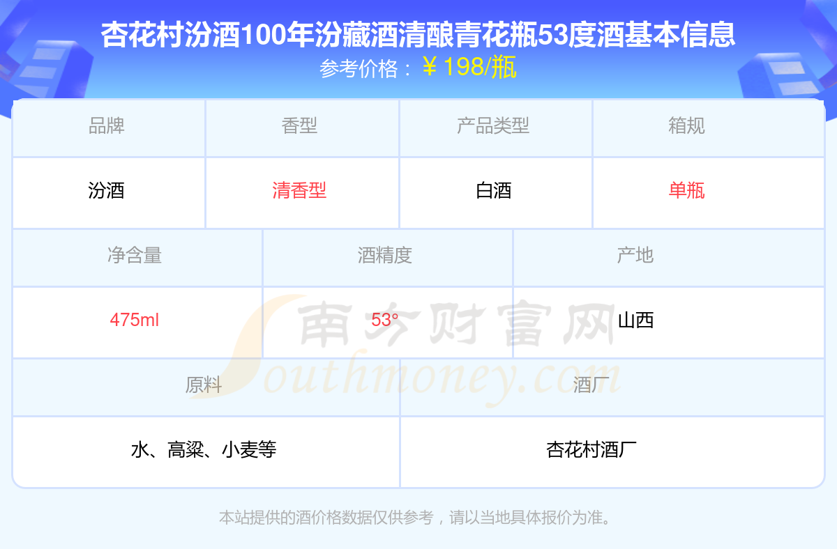杏花村汾酒100年汾藏酒清釀青花瓶53度基本信息