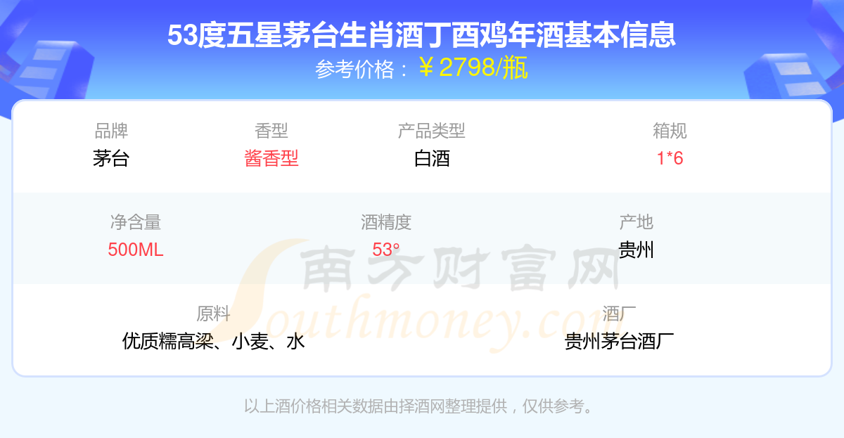 53度五星茅臺生肖酒丁酉雞年基本信息