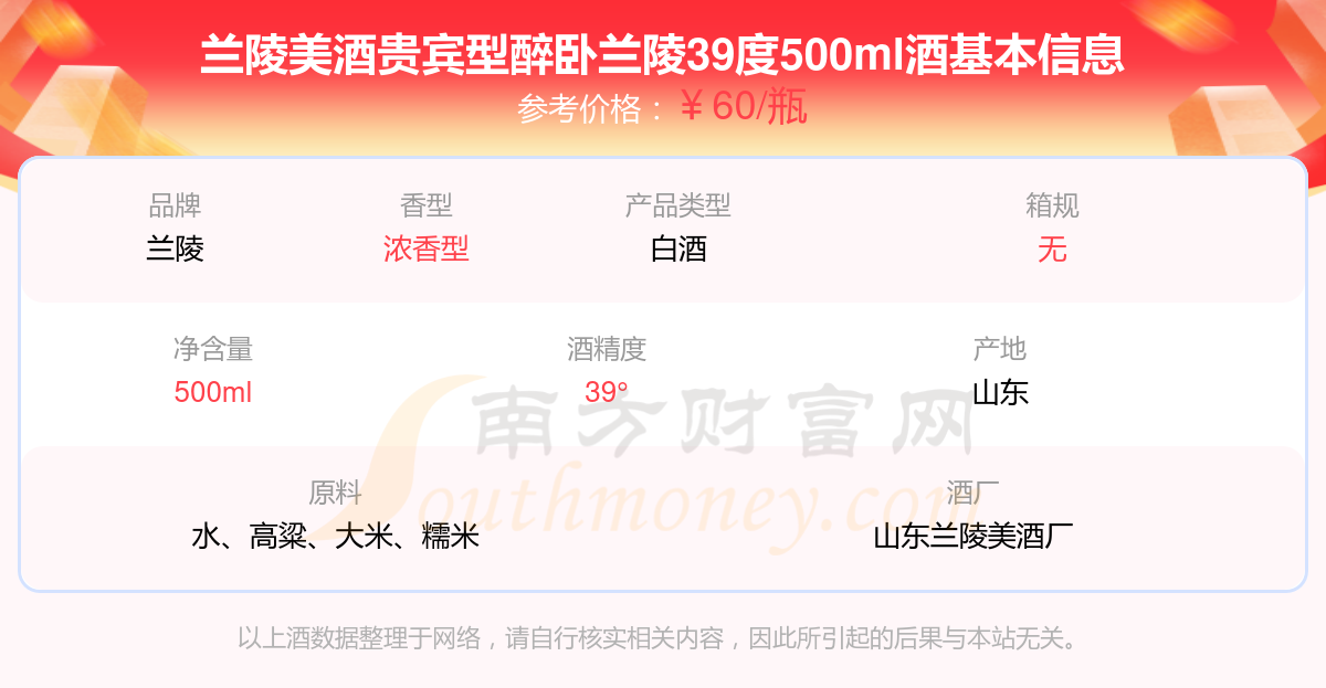 蘭陵美酒貴賓型醉臥蘭陵39度500ml基本信息