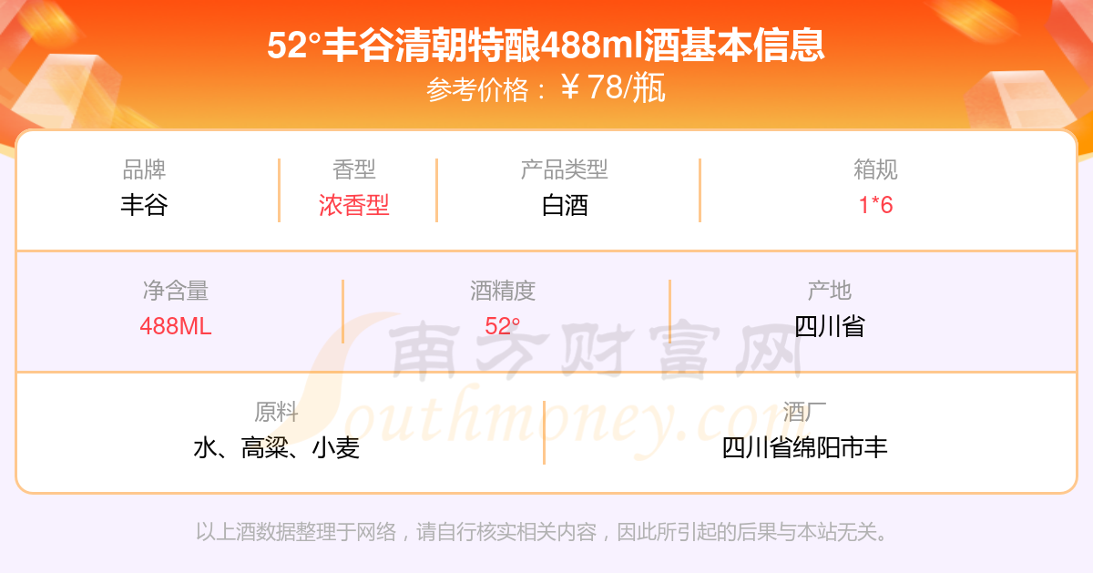 52°豐谷清朝特釀488ml基本信息