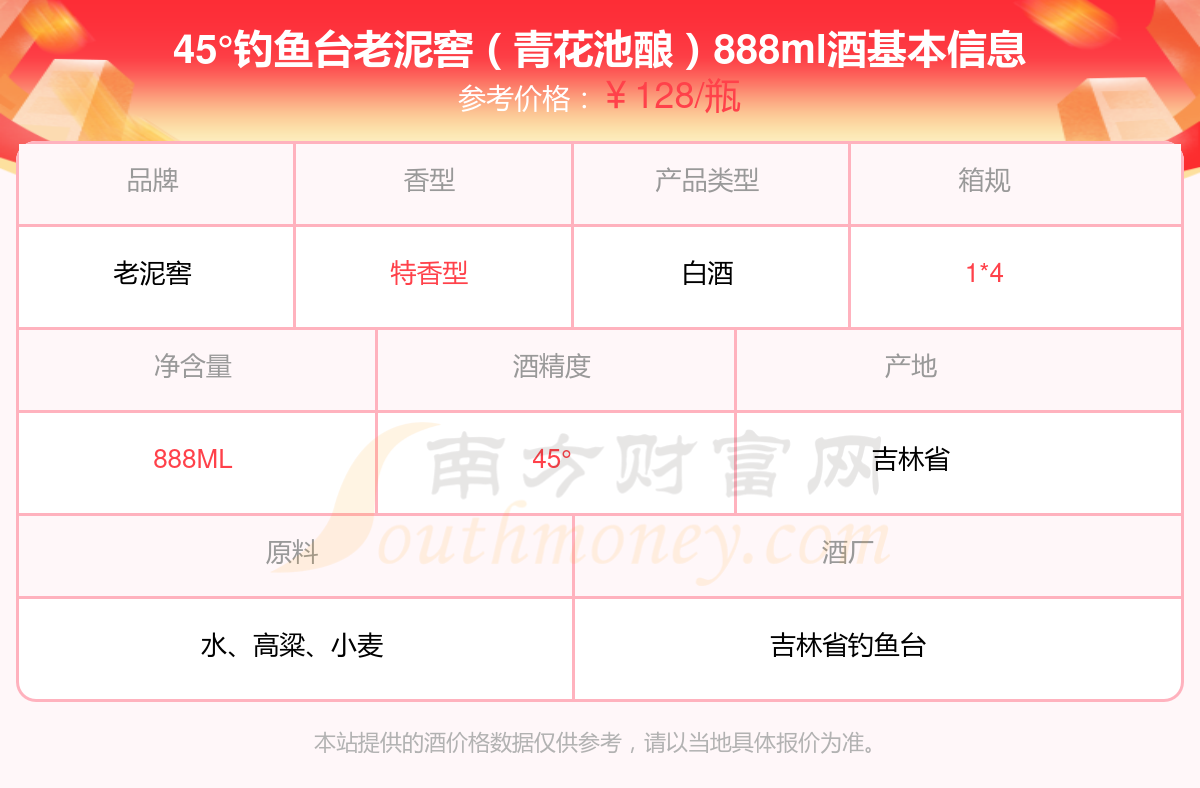 45°釣魚臺老泥窖(青花池釀)888ml基本信息