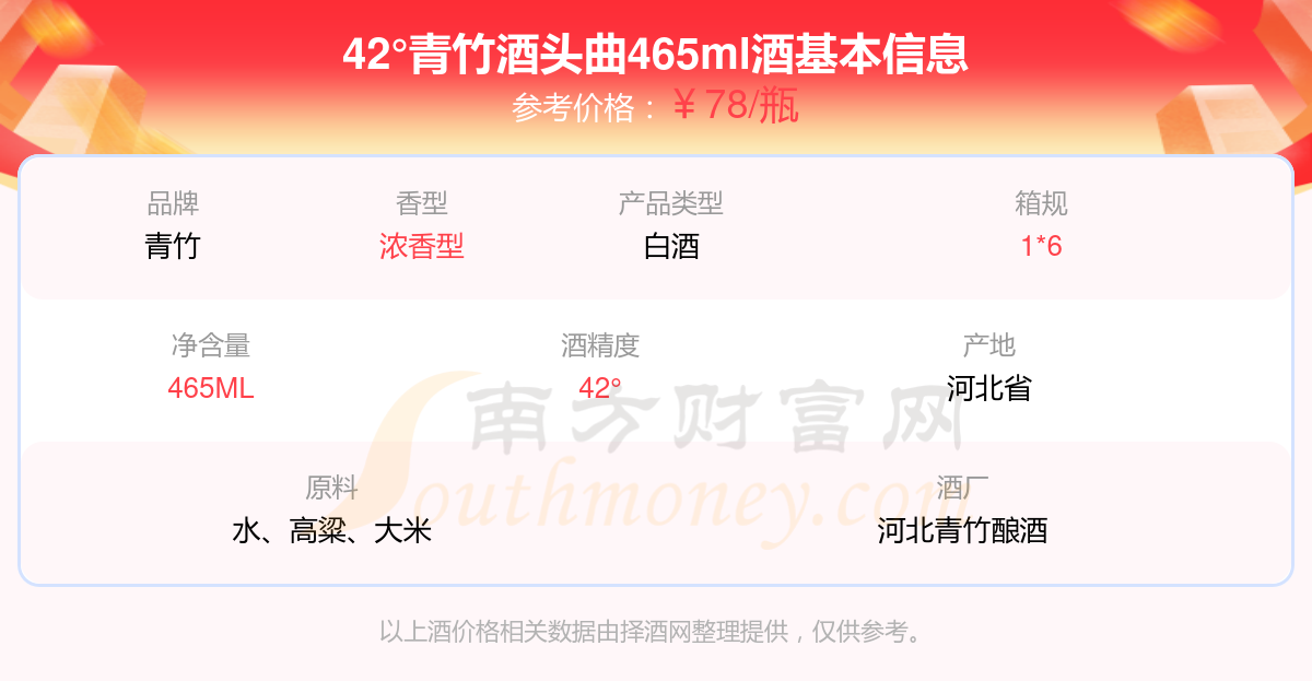 42°青竹酒頭曲465ml基本信息