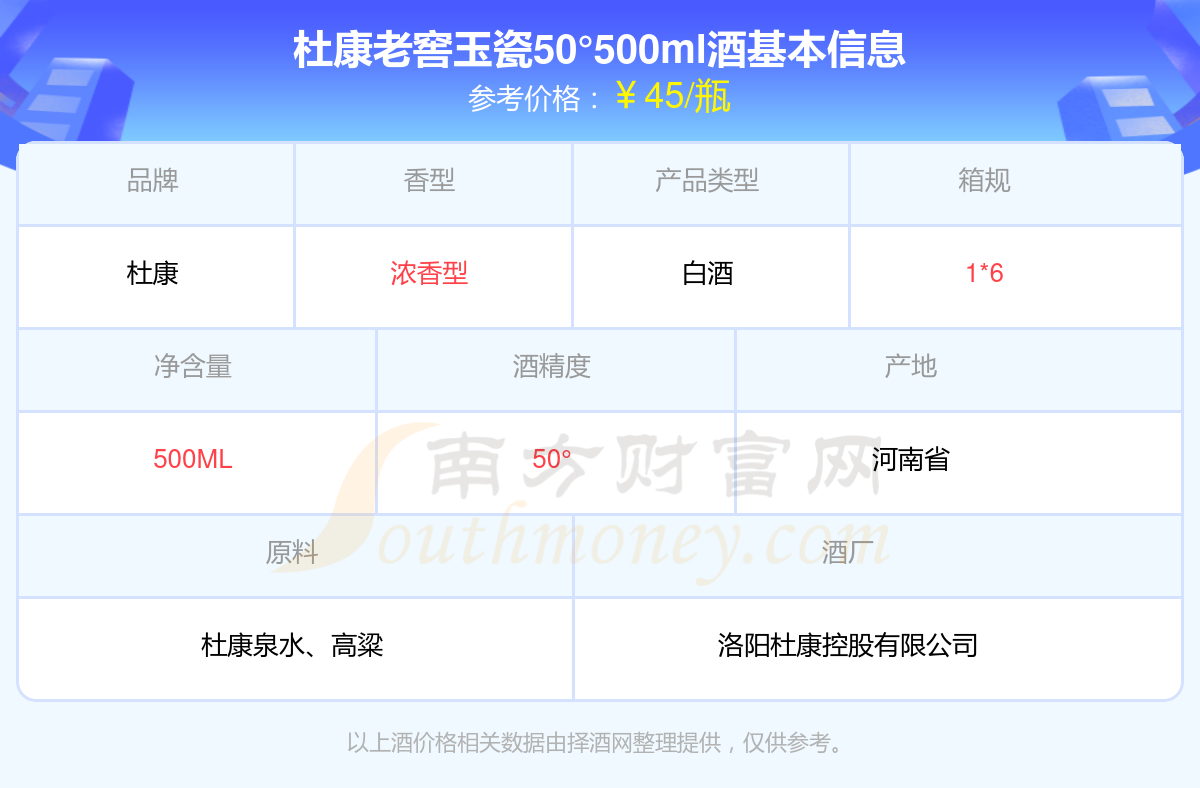 杜康老窖玉瓷50°500ml基本信息