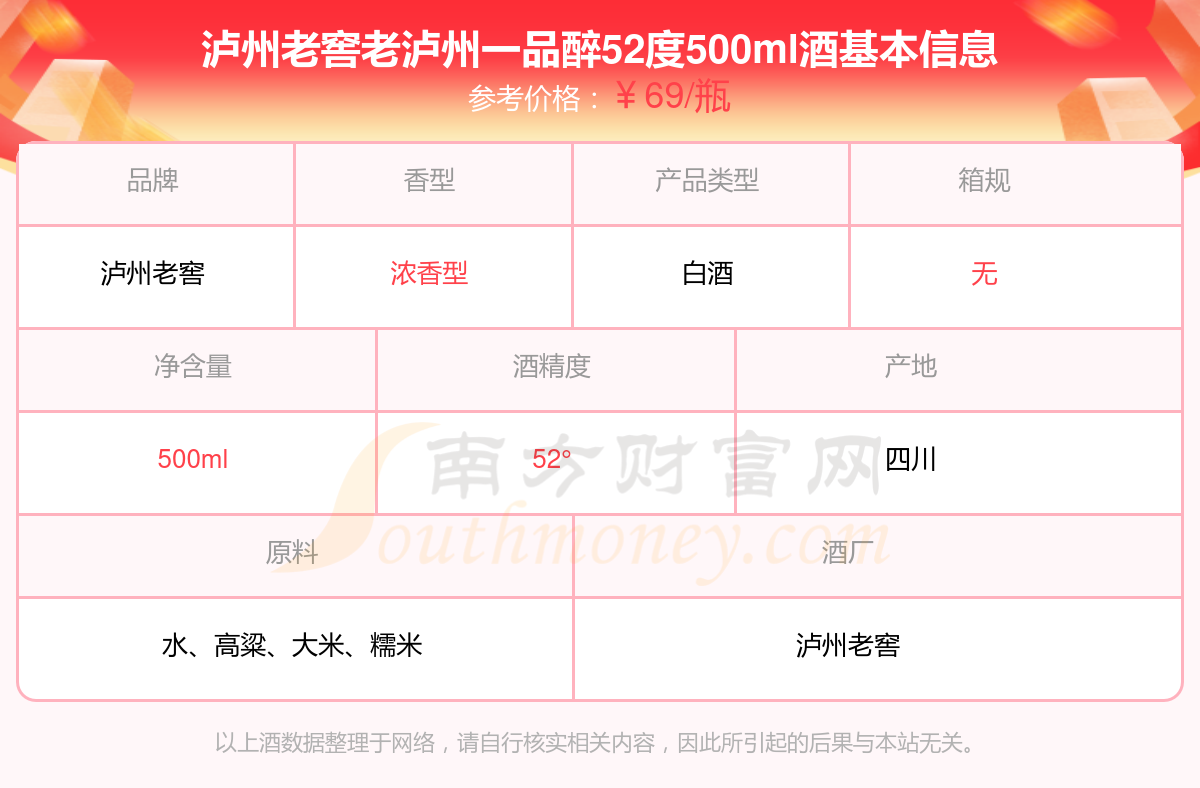 瀘州老窖老瀘州一品醉52度500ml基本信息