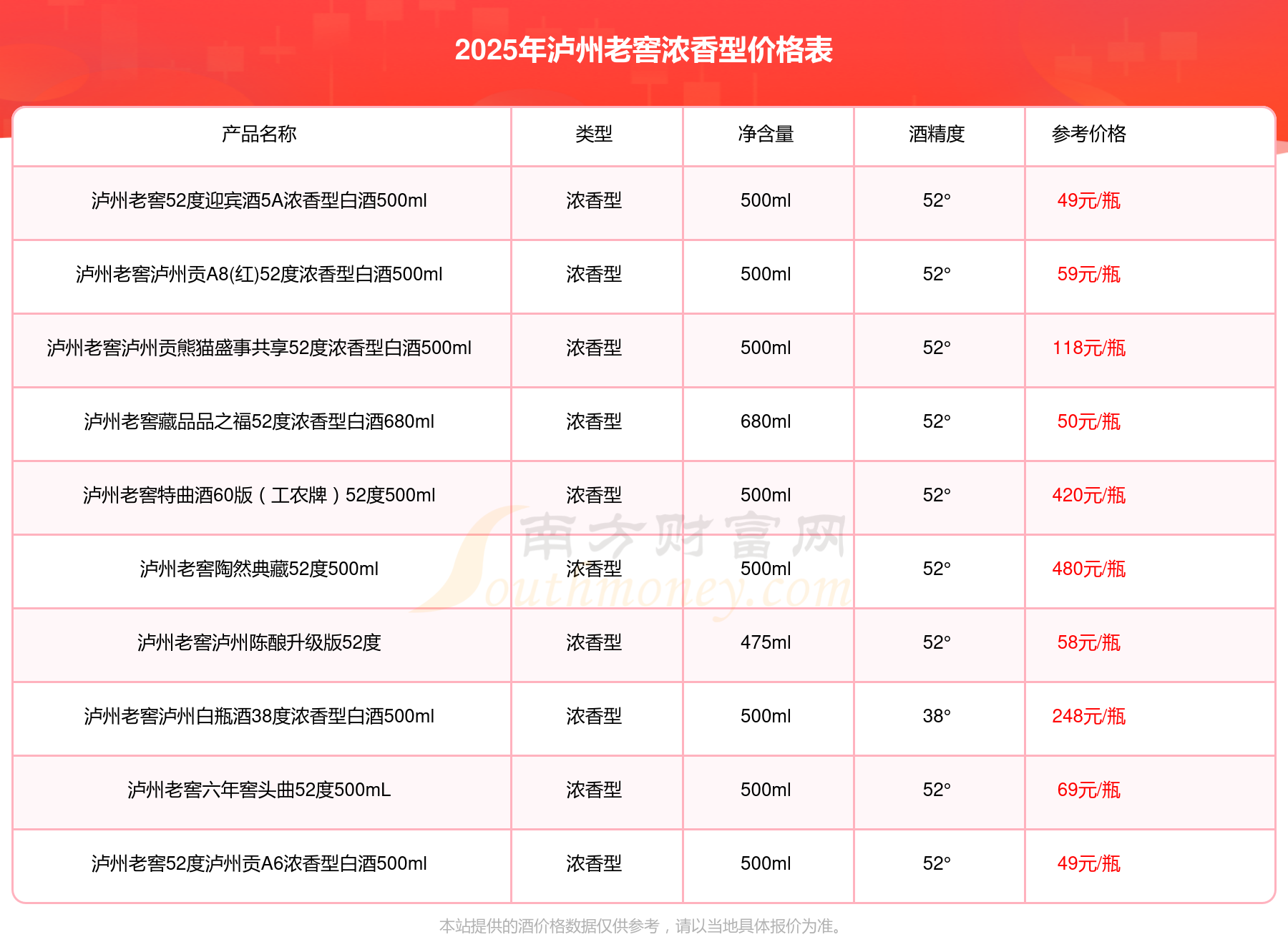 2025瀘州老窖濃香型酒最新價(jià)格: