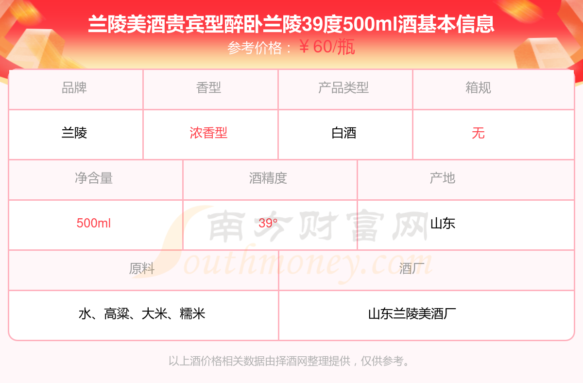 蘭陵美酒貴賓型醉臥蘭陵39度500ml基本信息