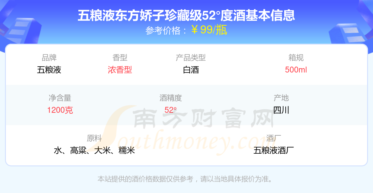 五糧液東方嬌子珍藏級(jí)52°度基本信息
