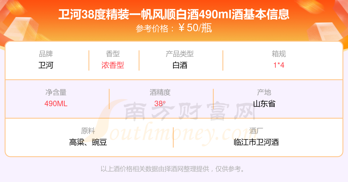 衛(wèi)河38度精裝一帆風順白酒490ml基本信息