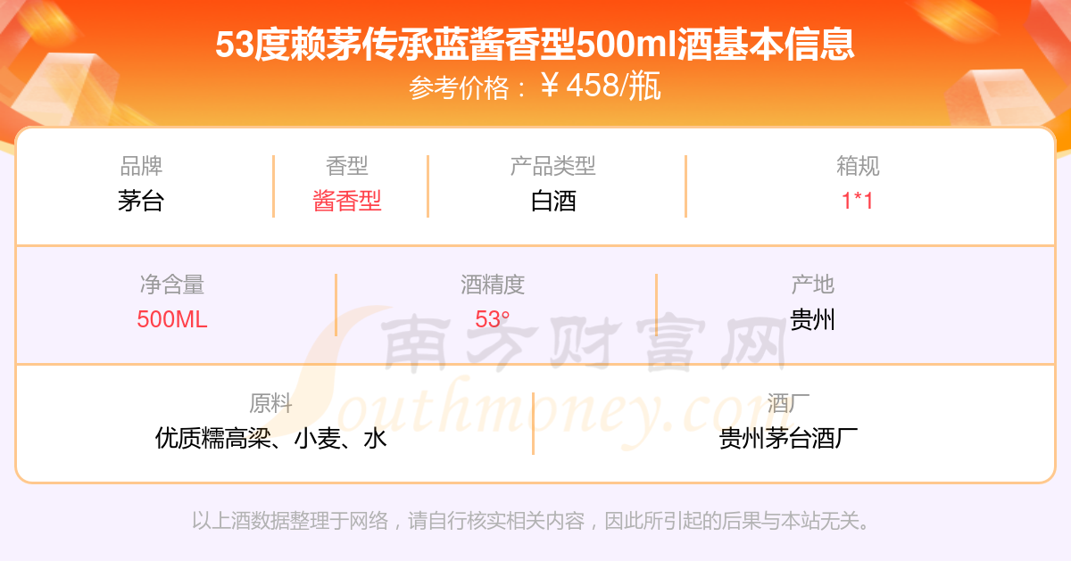 53度賴茅傳承藍(lán)醬香型500ml基本信息