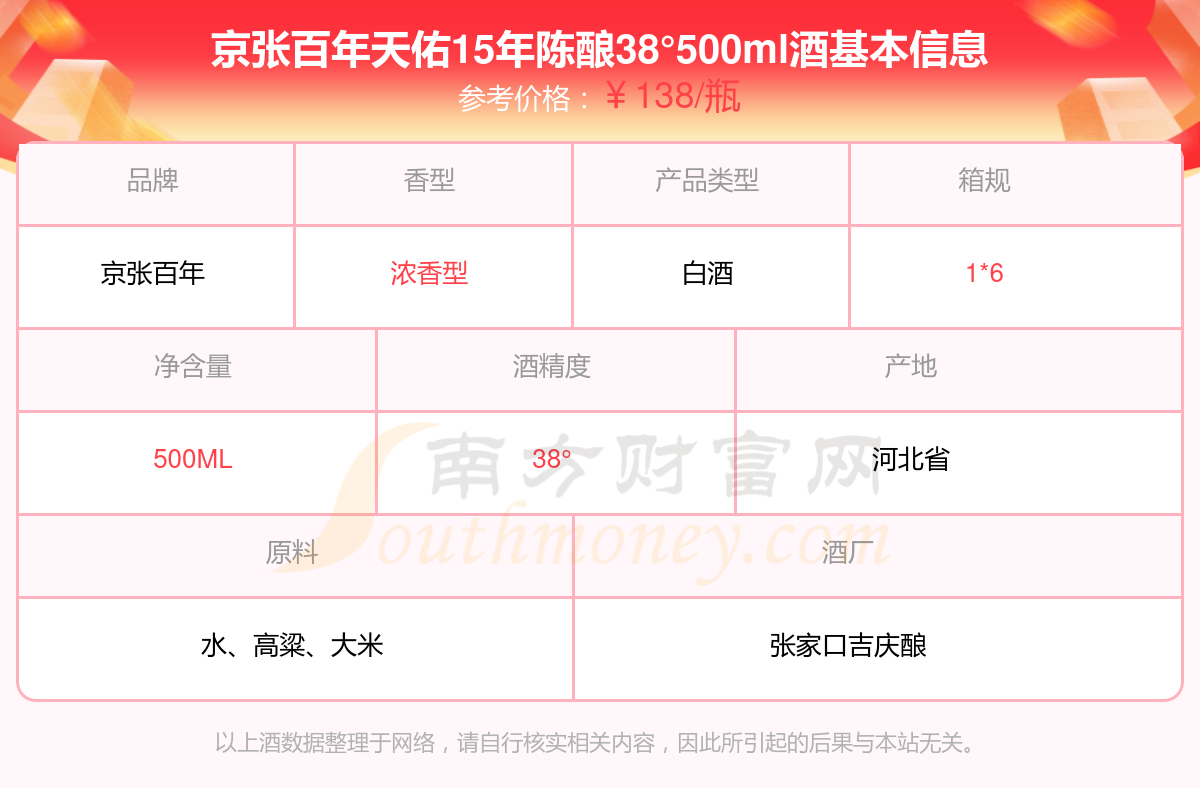 京張百年天佑15年陳釀38°500ml基本信息
