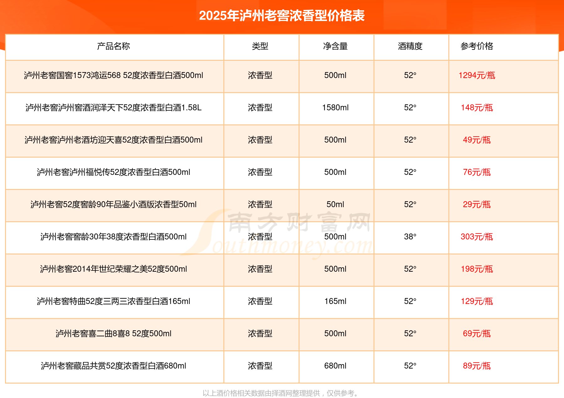 2025年,瀘州老窖國窖1573春釀鼠兆豐年E 55度、瀘州老窖國窖1573生命中的那壇酒55度014、瀘州老窖國窖1573春釀鼠兆豐年A 55度、瀘州老窖國窖1573生命中的那壇酒55度013濃香型白酒1000ml、瀘州老窖國窖1573生命中的那壇酒55度009 1000ml等瀘州老窖濃香型酒價格如下:瀘州老窖國窖1573春釀鼠兆豐年E 55度參考價17999元/瓶、瀘州老窖國窖1573生命中的那壇酒55度014參考價9999元/瓶、瀘州老窖國窖1573春釀鼠兆豐年A 55度參考價5088元/瓶、瀘州老窖國窖1573生命中的那壇酒55度013濃香型白酒1000ml參考價4988元/瓶、瀘州老窖國窖1573生命中的那壇酒55度009 1000ml參考價4288元/瓶。