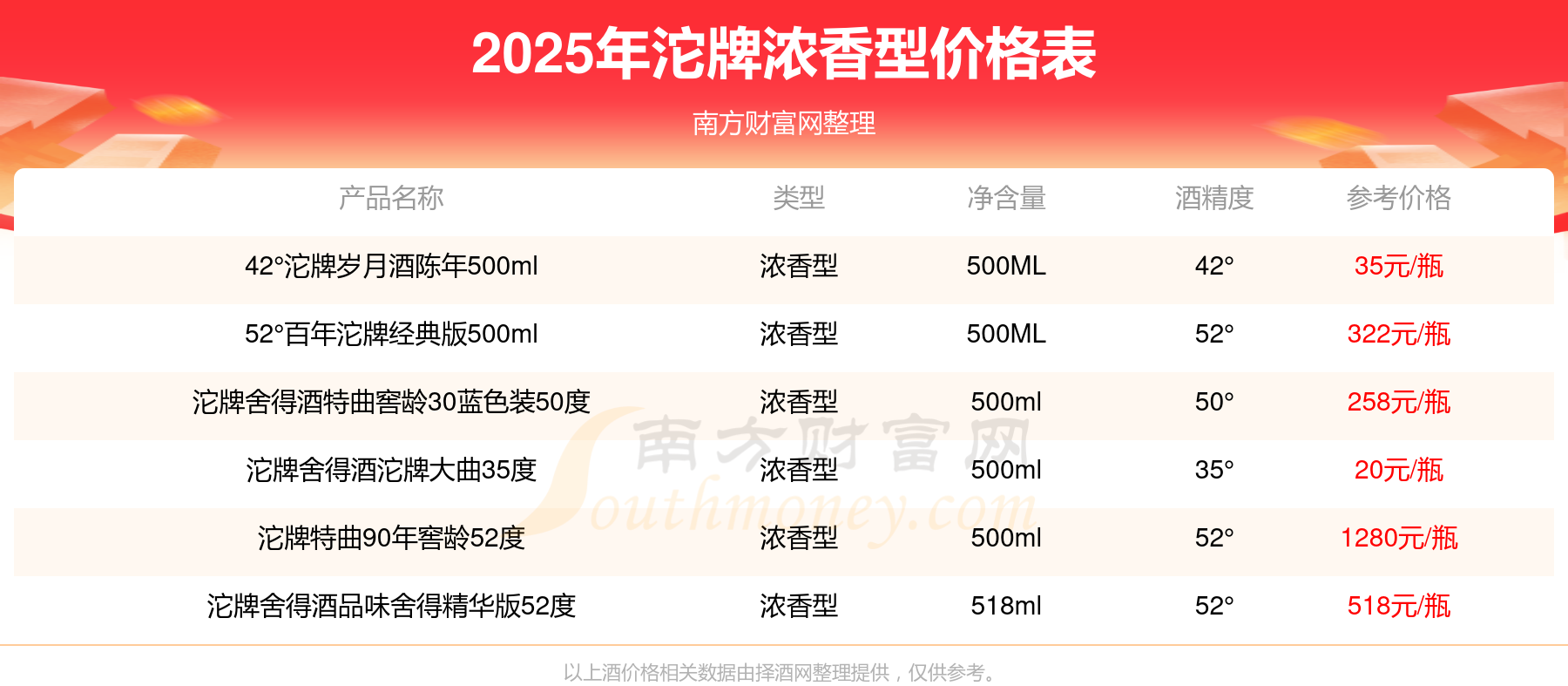 當(dāng)前沱牌濃香型酒價(jià)格最高的酒為沱牌特曲90年窖齡52度,參考價(jià)1280元/瓶,而沱牌濃香型酒價(jià)格最低的是沱牌舍得酒沱牌大曲35度,參考價(jià)20元/瓶,價(jià)格高低差為1260元/瓶。