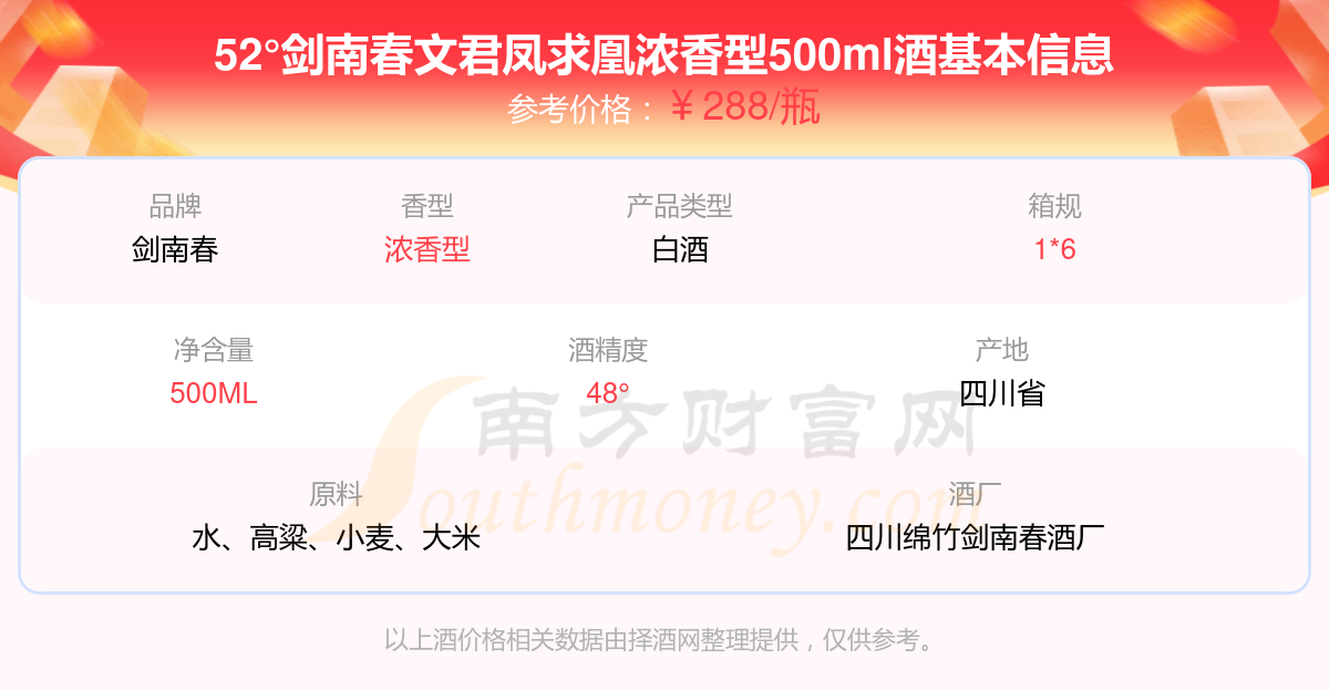 52°劍南春文君鳳求凰濃香型500ml基本信息