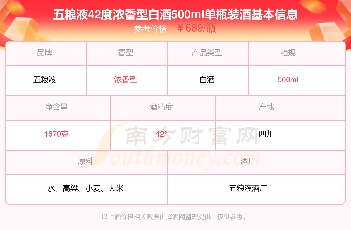 五糧液42度濃香型白酒500ml單瓶裝基本信息