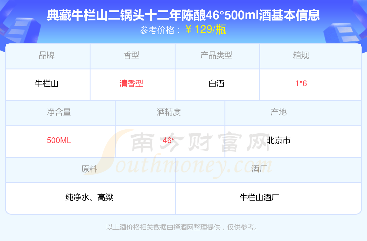 典藏牛欄山二鍋頭十二年陳釀46°500ml基本信息