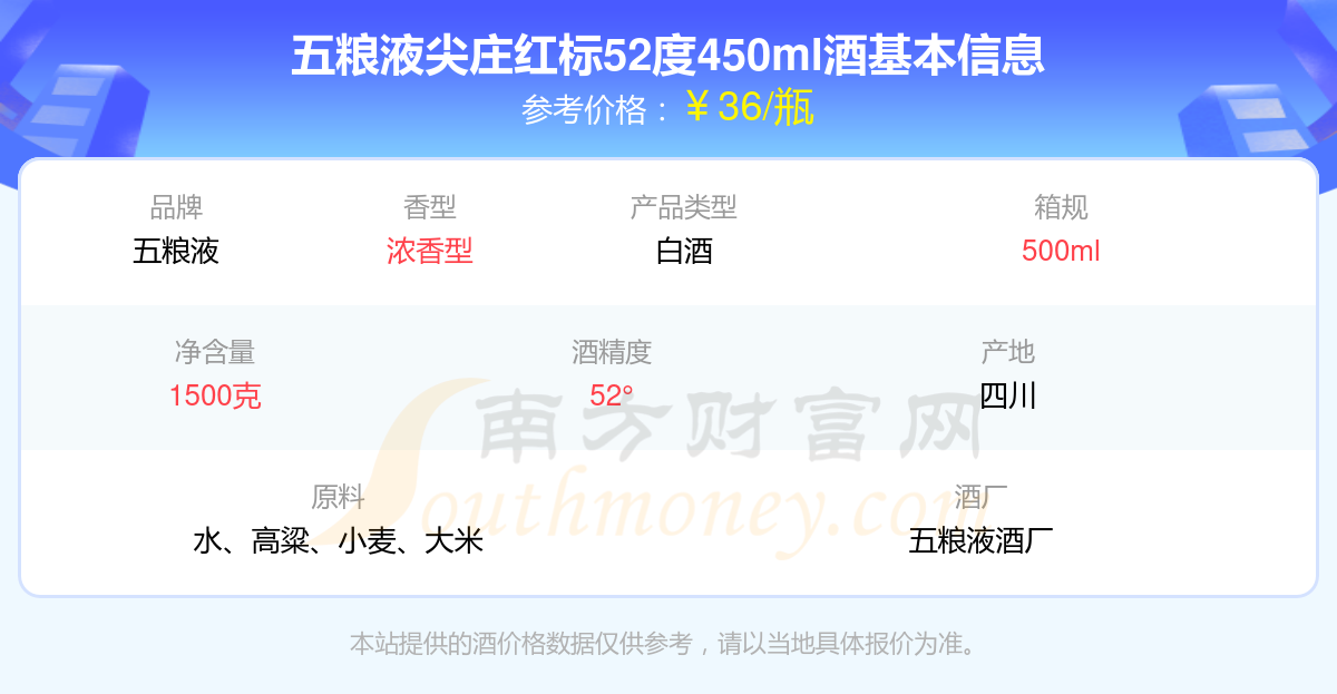 五糧液尖莊紅標(biāo)52度450ml基本信息