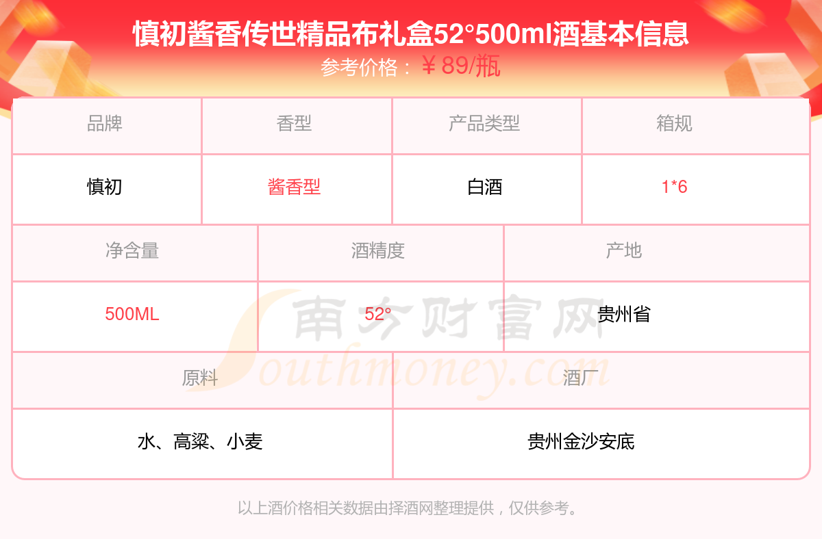 慎初醬香傳世精品布禮盒52°500ml基本信息