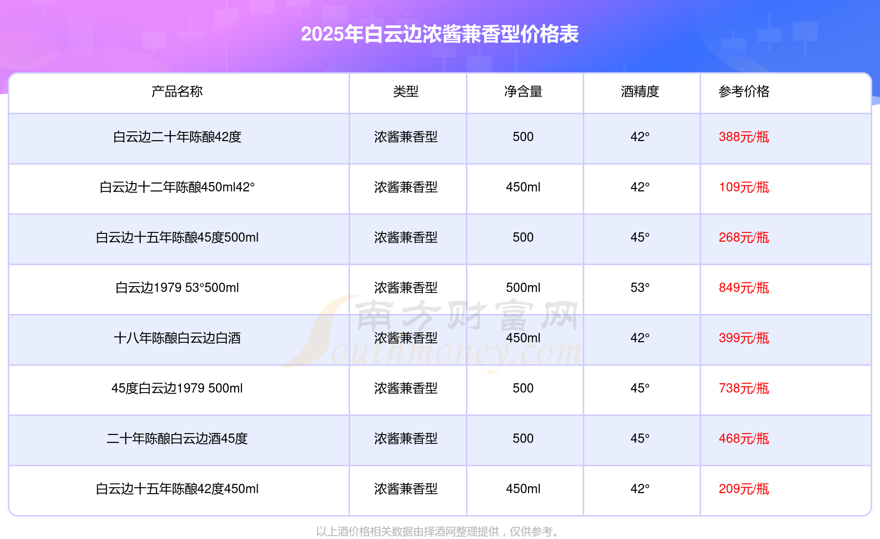 2025白云邊濃醬兼香型酒最新價(jià)格: