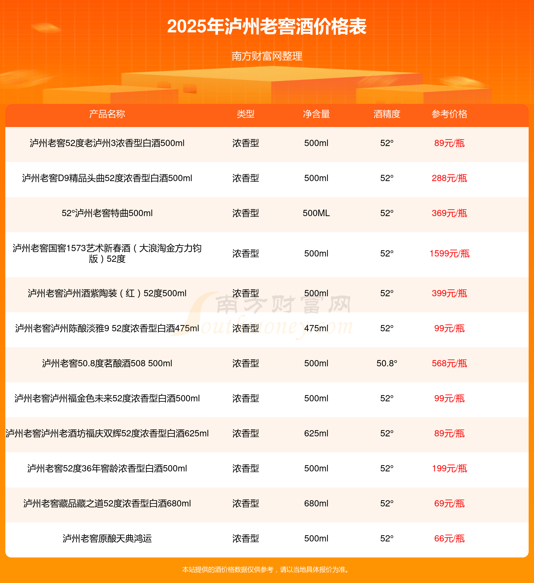 瀘州老窖國窖1573春釀鼠兆豐年E 55度參考價17999元/瓶、瀘州老窖國窖1573生命中的那壇酒55度014參考價9999元/瓶、瀘州老窖國窖1573春釀鼠兆豐年A 55度參考價5088元/瓶、瀘州老窖國窖1573生命中的那壇酒55度013濃香型白酒1000ml參考價4988元/瓶、瀘州老窖國窖1573生命中的那壇酒55度009 1000ml參考價4288元/瓶、瀘州老窖國窖1573中國品味52度濃香型白酒500ml參考價2888元/瓶。