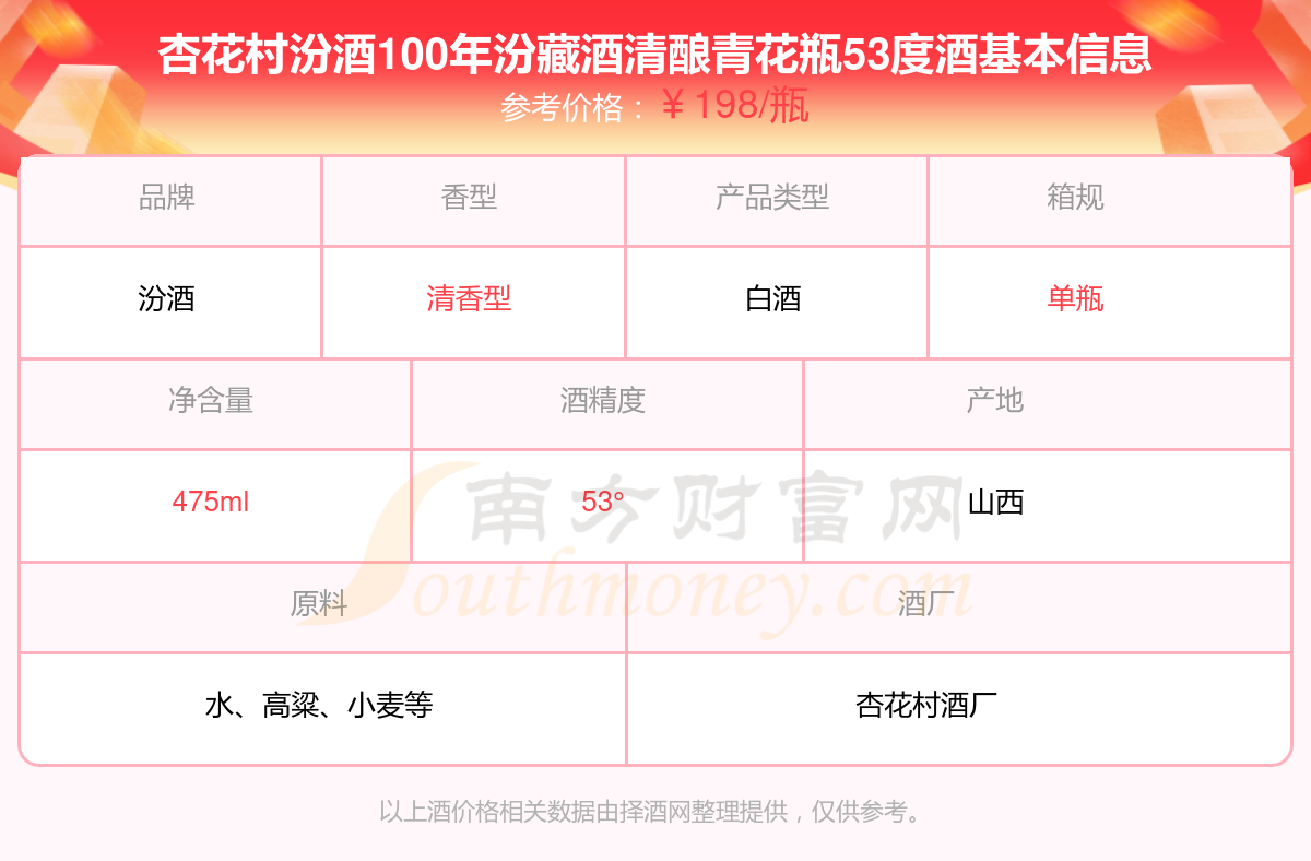 杏花村汾酒100年汾藏酒清釀青花瓶53度基本信息