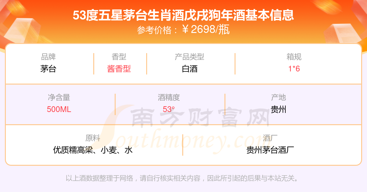 53度五星茅臺(tái)生肖酒戊戌狗年基本信息