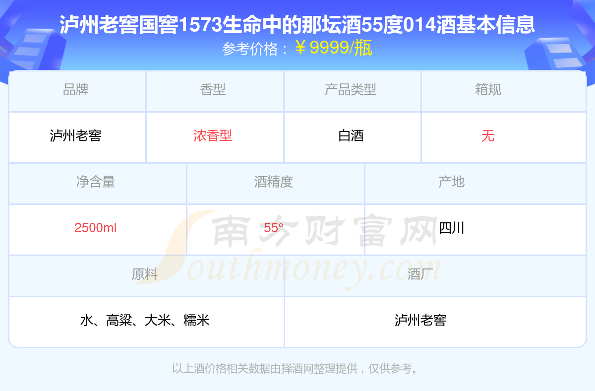 瀘州老窖國窖1573生命中的那壇酒55度014基本信息