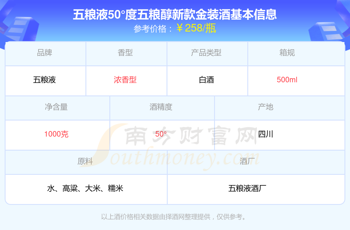 五糧液50°度五糧醇新款金裝基本信息
