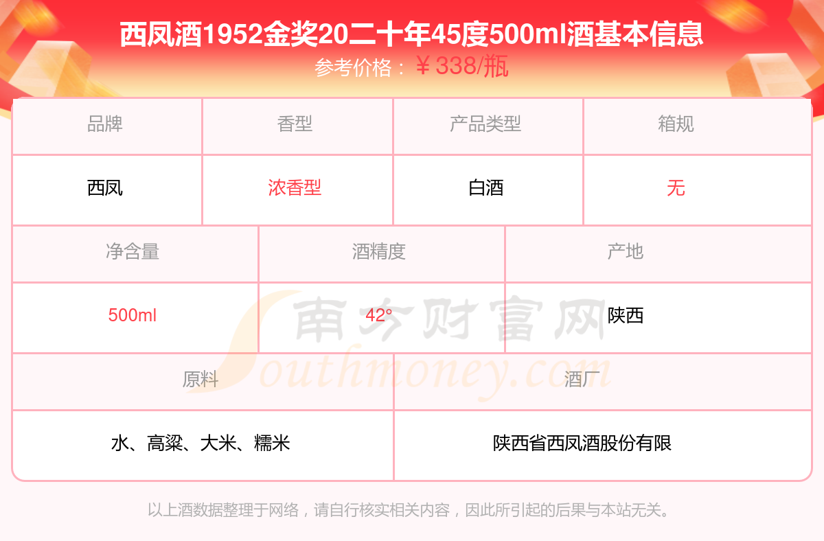 西鳳酒1952金獎20二十年45度500ml基本信息