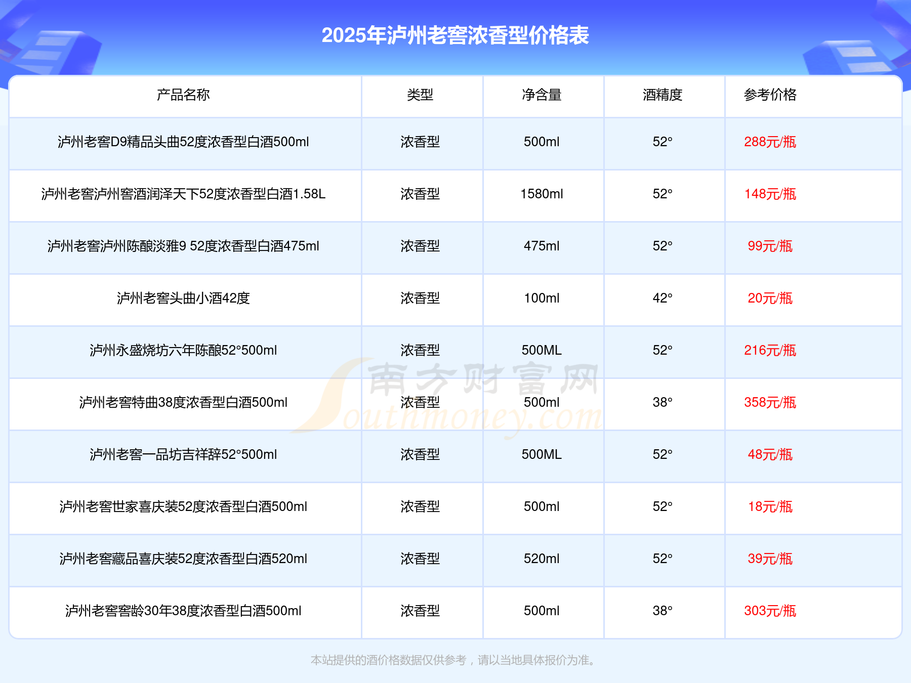 瀘州老窖國窖1573春釀鼠兆豐年E 55度參考價17999元/瓶、瀘州老窖國窖1573生命中的那壇酒55度014參考價9999元/瓶、瀘州老窖國窖1573春釀鼠兆豐年A 55度參考價5088元/瓶、瀘州老窖國窖1573生命中的那壇酒55度013濃香型白酒1000ml參考價4988元/瓶、瀘州老窖國窖1573生命中的那壇酒55度009 1000ml參考價4288元/瓶、瀘州老窖國窖1573中國品味52度濃香型白酒500ml參考價2888元/瓶、瀘州老窖國窖1573許燎源概念作品58度濃香型白酒1000ml參考價2680元/瓶。
