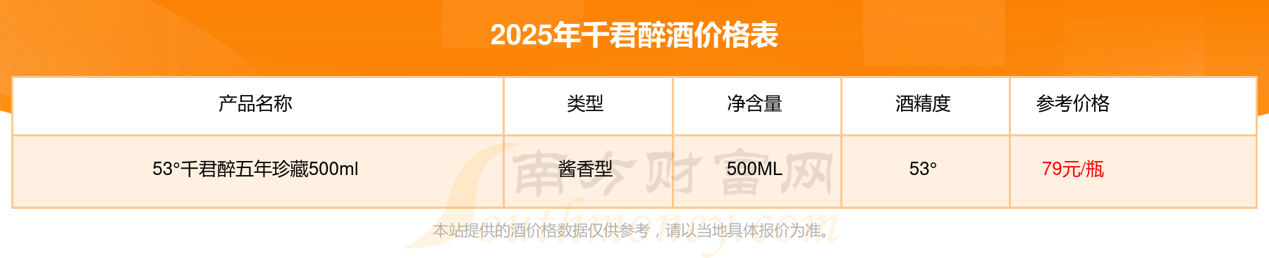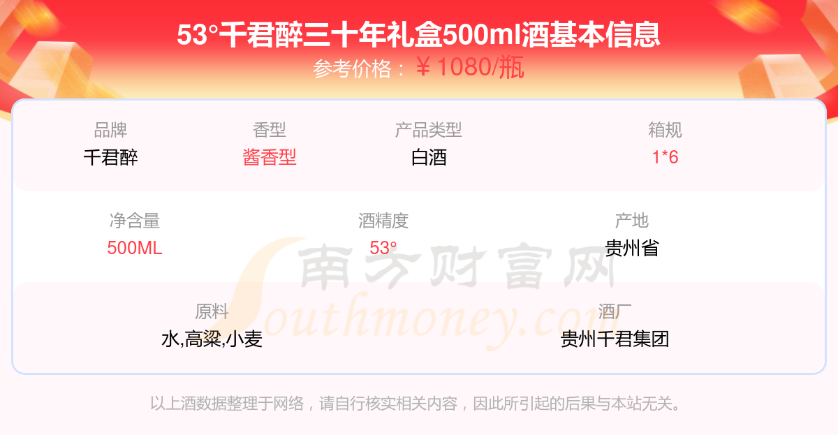 53°千君醉三十年禮盒500ml基本信息