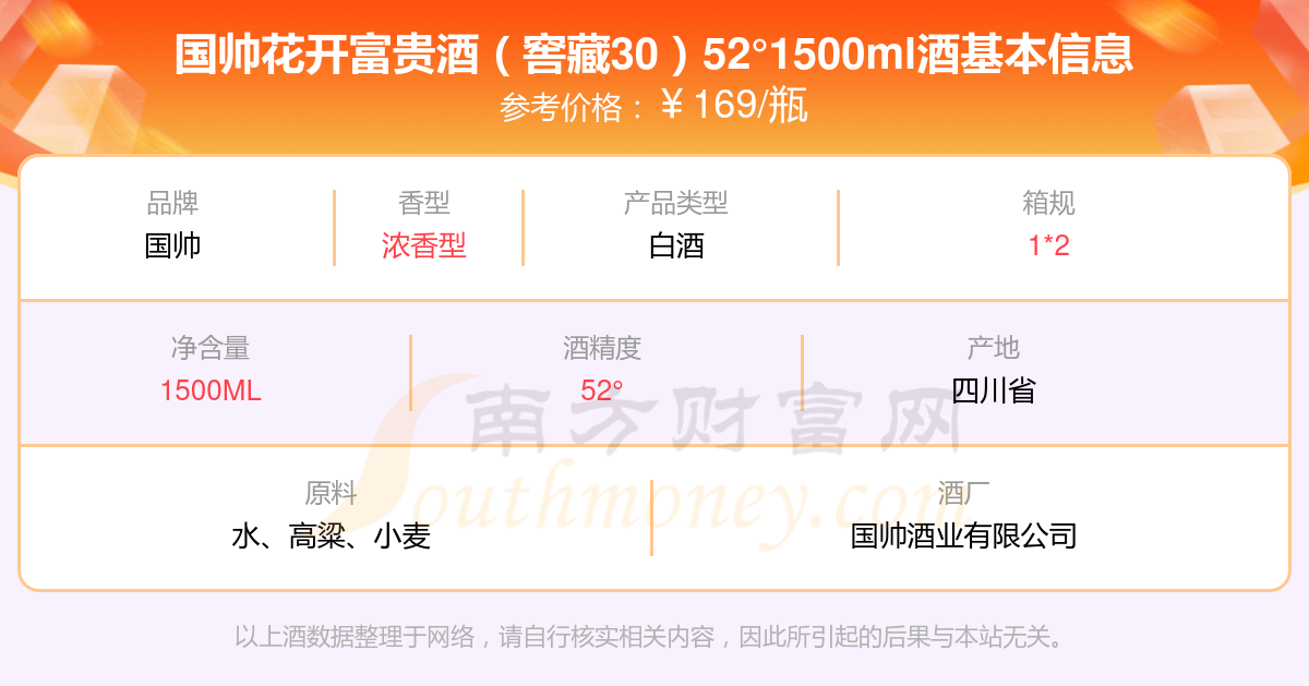 國帥花開富貴酒(窖藏30)52°1500ml基本信息
