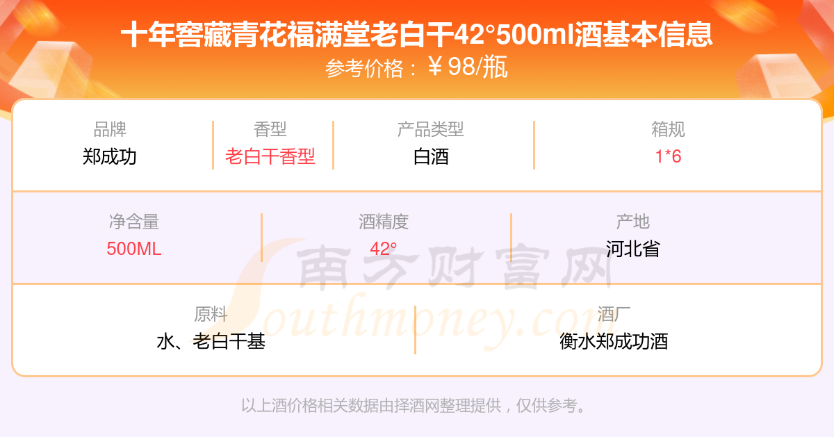 十年窖藏青花福滿堂老白干42°500ml基本信息