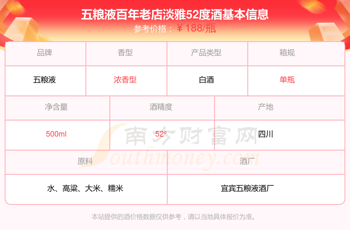 五糧液百年老店淡雅52度基本信息