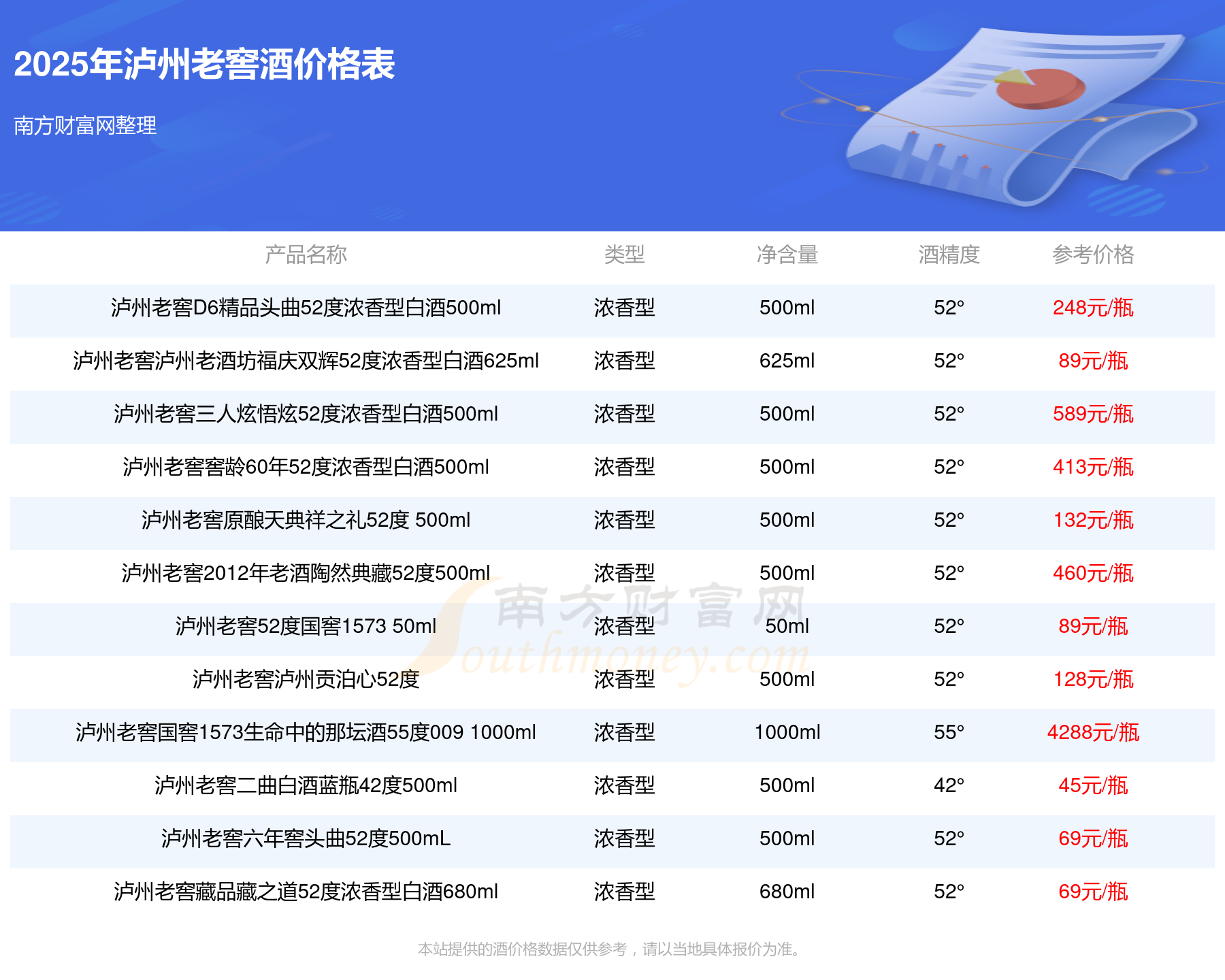2025年,瀘州老窖酒價(jià)格最高的是瀘州老窖國(guó)窖1573春釀鼠兆豐年E 55度,參考價(jià)17999元,最低的是瀘州老窖45度五洲醉8窖經(jīng)典小酒版濃香型100ml,參考價(jià)10元,價(jià)格高低差為17989元。