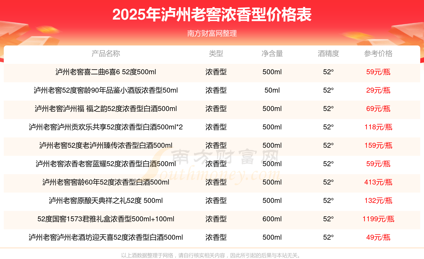 2025年瀘州老窖濃香型酒瀘州老窖國(guó)窖1573春釀鼠兆豐年E 55度、瀘州老窖國(guó)窖1573生命中的那壇酒55度014、瀘州老窖國(guó)窖1573春釀鼠兆豐年A 55度、瀘州老窖國(guó)窖1573生命中的那壇酒55度013濃香型白酒1000ml等最新價(jià)格如下:瀘州老窖國(guó)窖1573春釀鼠兆豐年E 55度參考價(jià)17999元/瓶、瀘州老窖國(guó)窖1573生命中的那壇酒55度014參考價(jià)9999元/瓶、瀘州老窖國(guó)窖1573春釀鼠兆豐年A 55度參考價(jià)5088元/瓶、瀘州老窖國(guó)窖1573生命中的那壇酒55度013濃香型白酒1000ml參考價(jià)4988元/瓶。