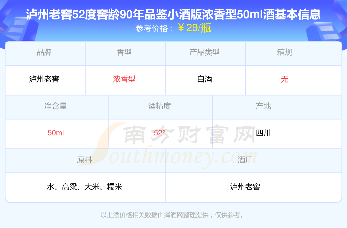 瀘州老窖52度窖齡90年品鑒小酒版濃香型50ml基本信息
