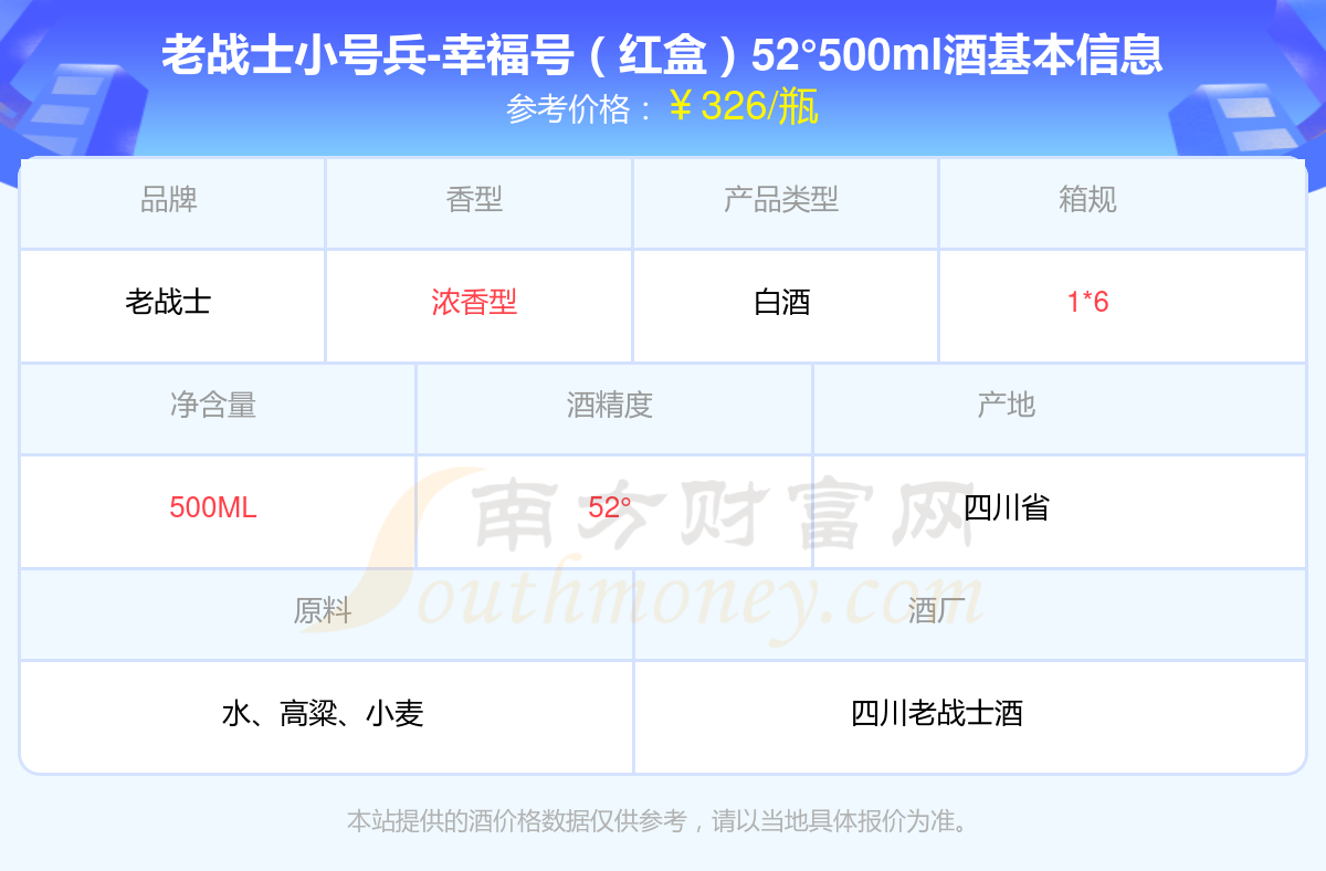 老戰(zhàn)士小號兵-幸福號(紅盒)52°500ml基本信息