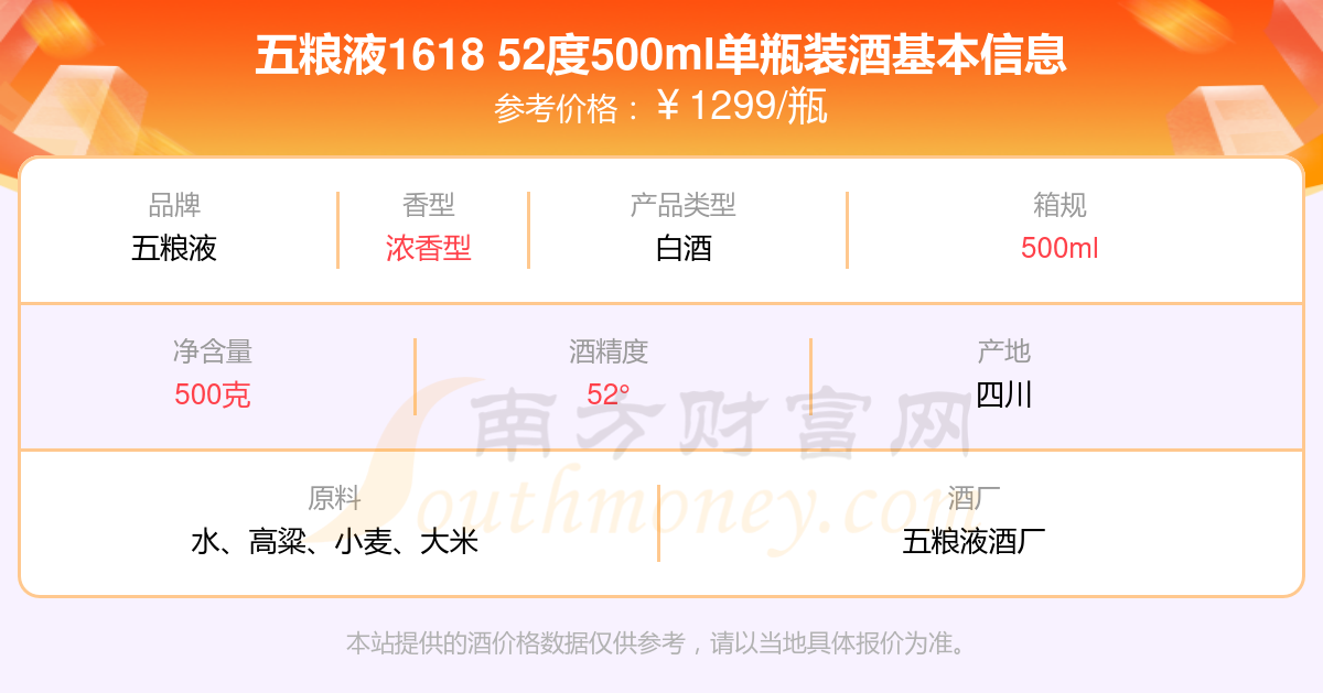 五糧液1618 52度500ml單瓶裝基本信息