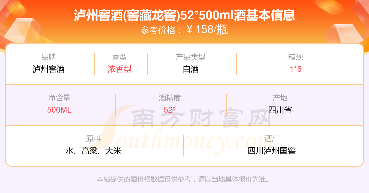 瀘州窖酒(窖藏龍窖)52°500ml基本信息