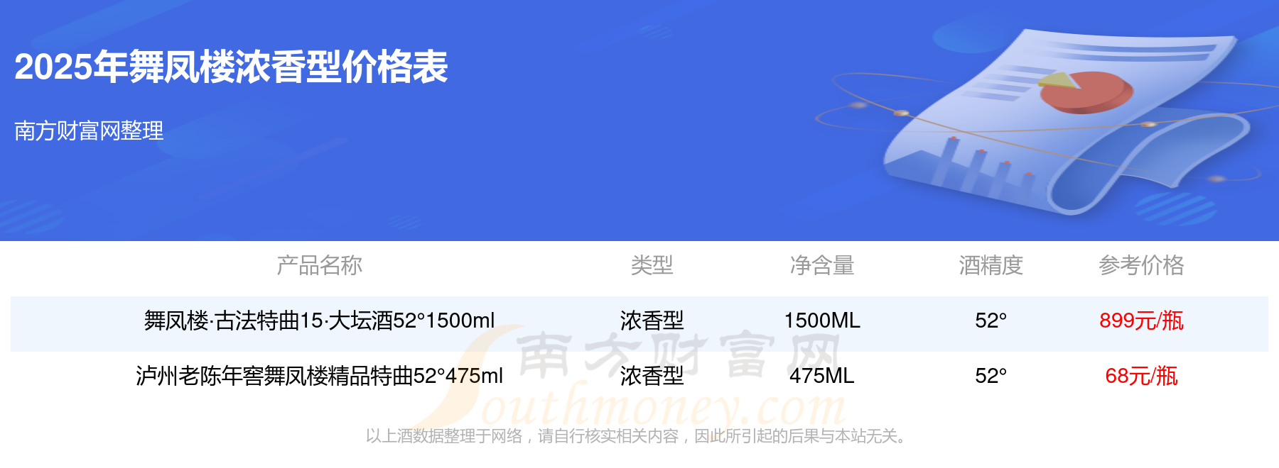 2025年,舞鳳樓·古法特曲15·大壇酒52°1500ml、瀘州老陳年窖舞鳳樓精品特曲52°475ml等舞鳳樓濃香型酒價(jià)格如下:舞鳳樓·古法特曲15·大壇酒52°1500ml參考價(jià)899元/瓶、瀘州老陳年窖舞鳳樓精品特曲52°475ml參考價(jià)68元/瓶。