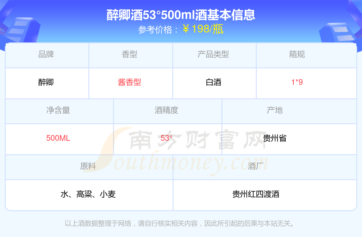 醉卿酒53°500ml基本信息