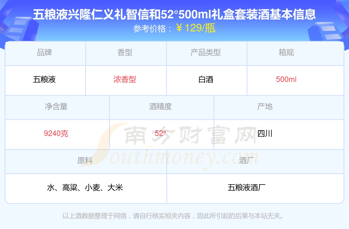 五糧液興隆仁義禮智信和52°500ml禮盒套裝基本信息
