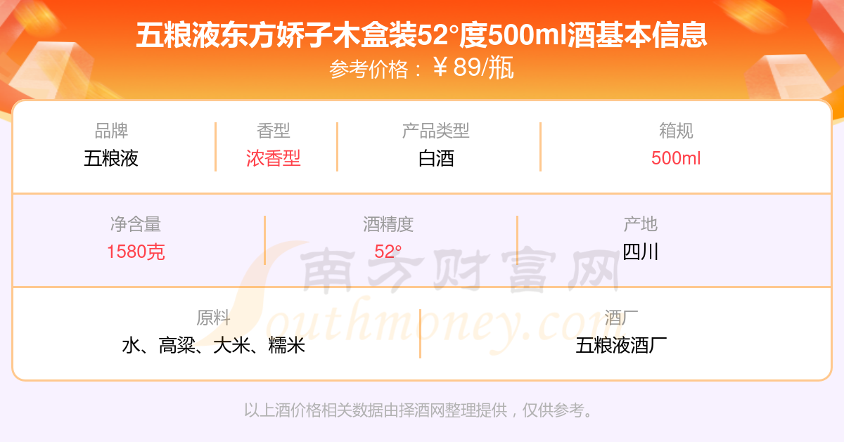 五糧液東方嬌子木盒裝52°度500ml基本信息
